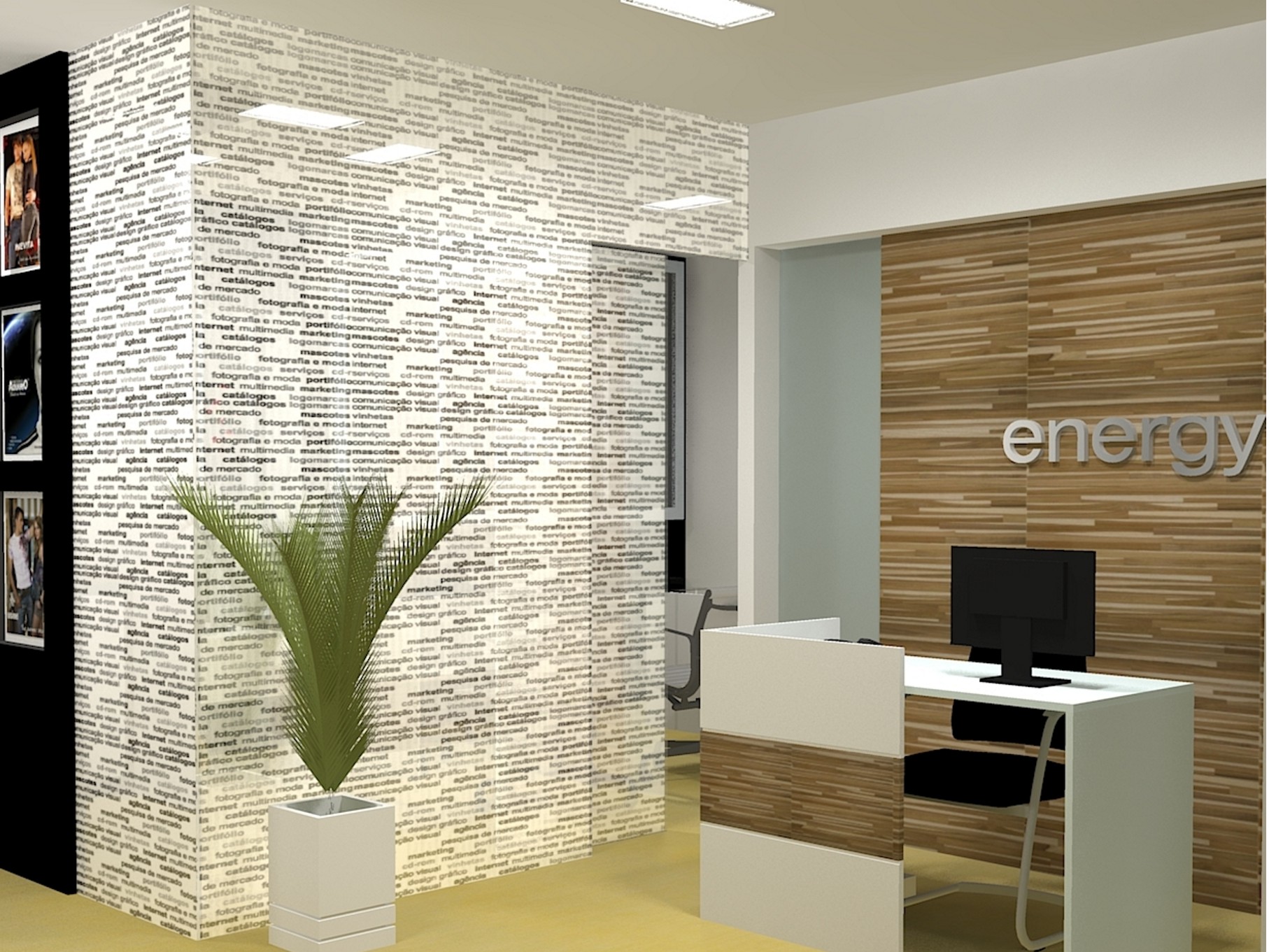 Layout e projeto do mobiliário e divisóvias.